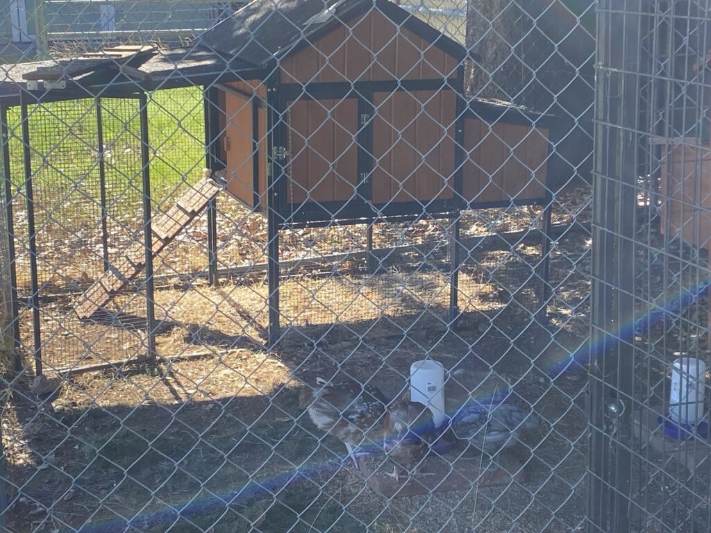 Since Dave and I are still not living in the ADU, Matt has the primary care of the birds. He and Dave are also working on getting them a larger yard but we have to wait until they aren’t trying to fly when spooked! The littlest Egger definitely tries to fly when startled! I went today to sit with them a while and the two Orpington came up to me to peck at my boots. They are pretty curious but still a little anxious. Their previous owner just walked into the coop and netted them quickly, so I can’t blame them. They were pretty quiet on the 1 1/2 hour drive to Wilton, only squawking when Dave had to brake quickly or make a quick turn.