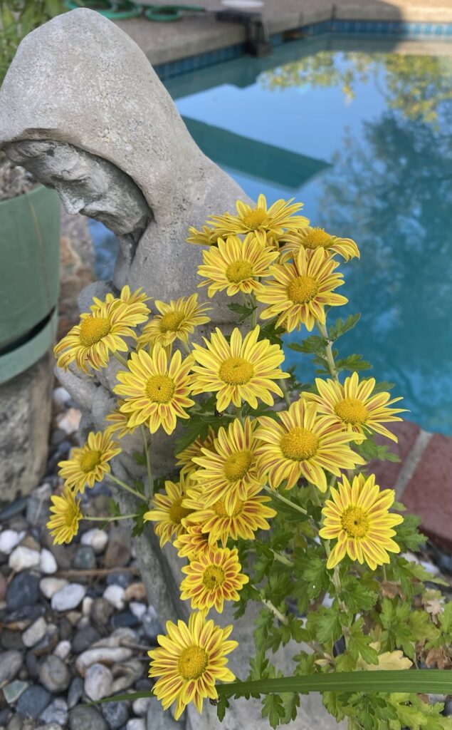 The fall blooming plants are also going to town. The chrysanthemums are blooming in full force and looking so bright. And just today I noticed the Camellias starting to open already. I hope they don’t get too cold now to continue to bloom!