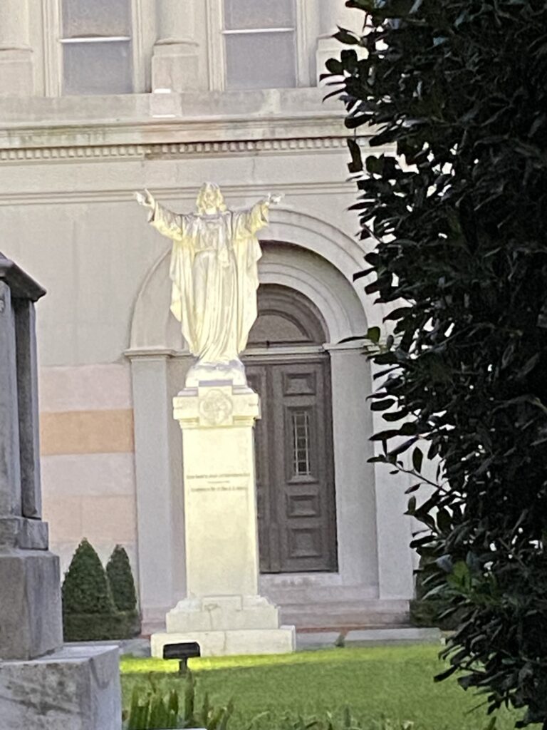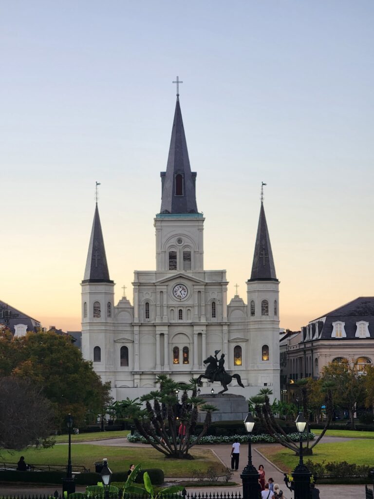 Tuesday morning we started with breakfast at Ruby Slipper – another amazing food spot that I had found. The waitress was hysterical! the beignets there were pumpkin spice and those guys were drooling over them. Ha! Then we walked down to the Saint Luis Cathedral which is beautiful. It is the second oldest continuously working church in the USA. I ended up talking to an 80+ docent about the flags that lined the aisle. He gave me printouts of all the flags and the only cost was that I had to say a prayer for him. One side had the flags of history (French, Spain, French, and then the USA. I was surprised to find out that after the Louisiana Purchase, the US flag had 15 stars and 15 stripes. Then Texas claimed it so there was a single star flag, Then the US flag came back with 13 stripes and 20 stars. The stars are added each year on July 4th until our current 50. Then it went back to Texas and finally back to the US. Eventually Cherie had to “save” me from him – I think he could have talked forever!