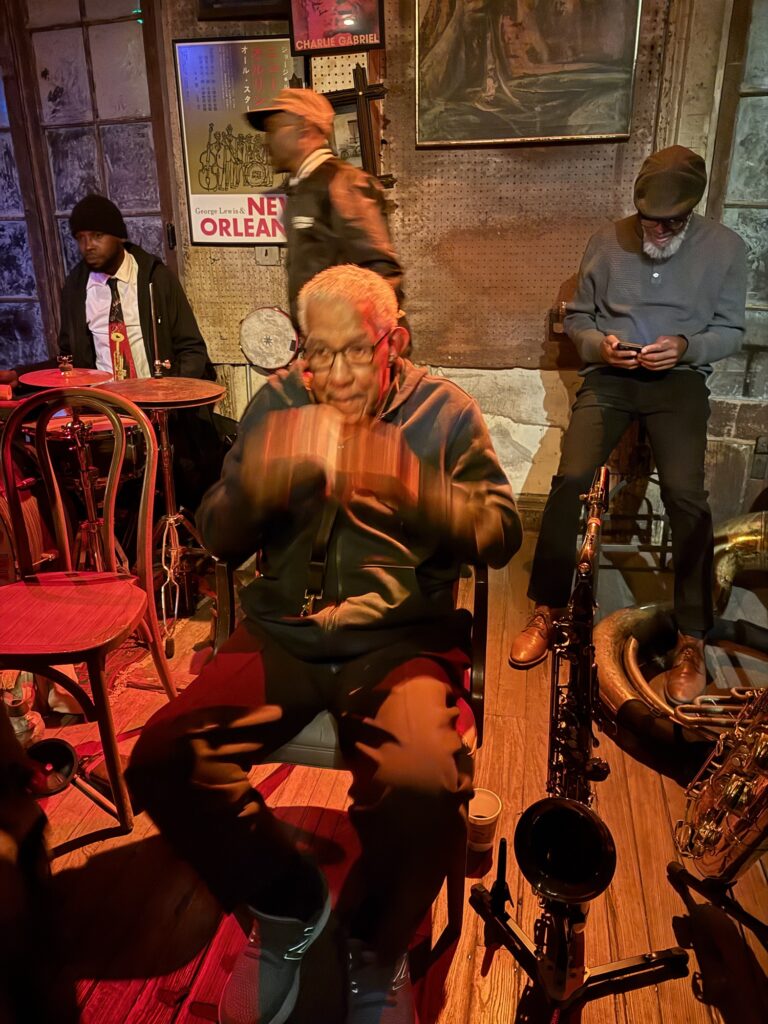 Then we headed to Preservation Hall to hear a Big Brass band. We had front row seats and it was astounding music. I was 2-3 feet away from a tenor sax, so I could really feel it. They had a slide trombone, 2 trumpets, 2 tenor saxophones (one played by a man who has been playing for 83 years!), a baritone sax, a sousaphone and 2 drummers. In a pretty small room (<400 square feet!) full of people!