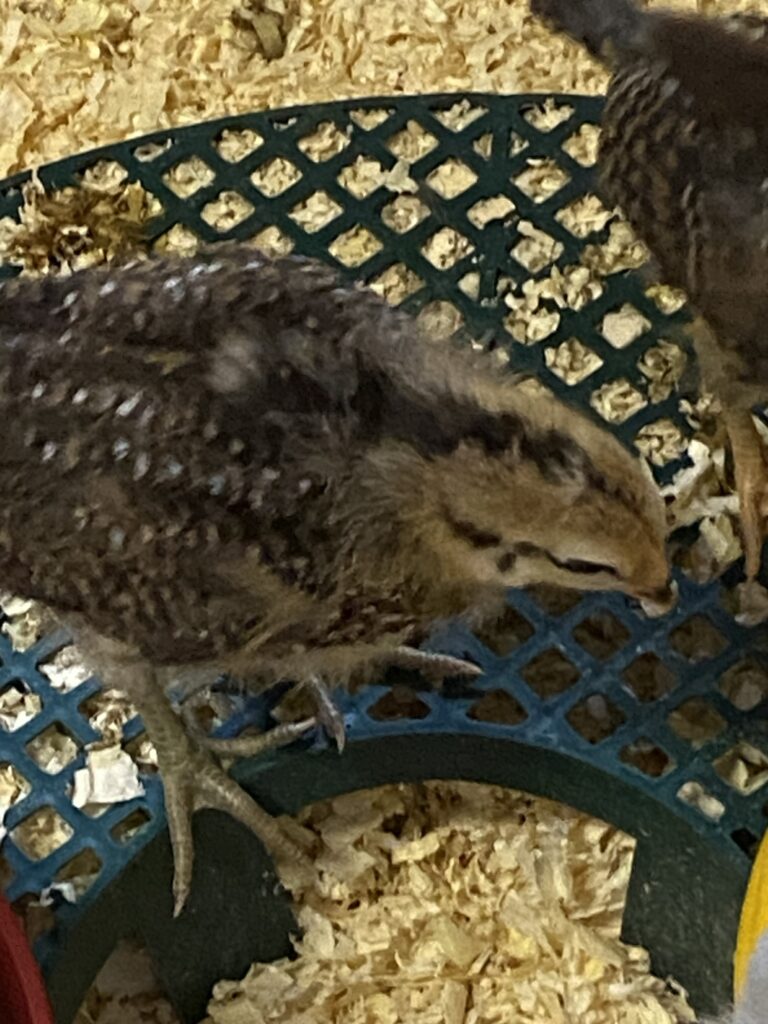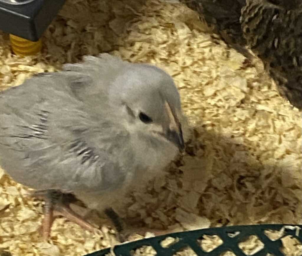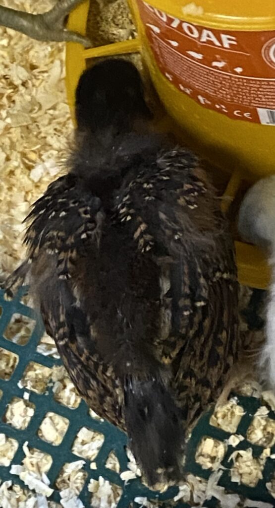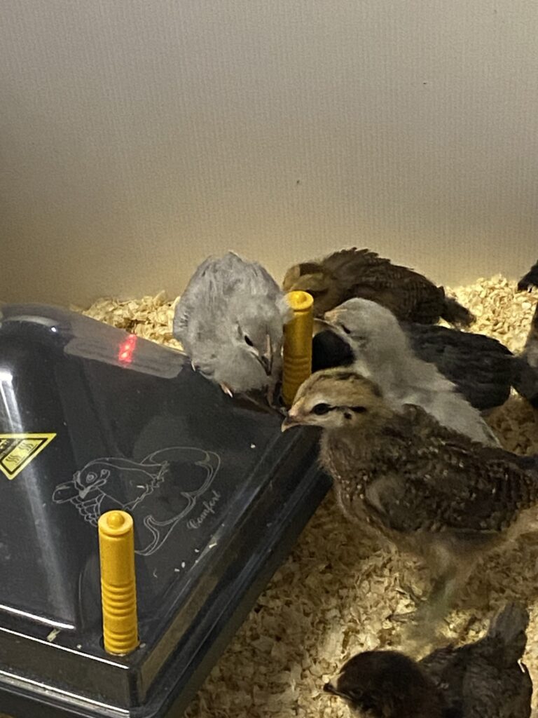 In the meantime, the chicks are continuing to grow and get feathers. Definitely not fluffy downy chicks any more. They are looking a bit rough these days with funny pin feathers poking out and then the mix of down and contour feathers. They change so fast! They are just over 3 weeks old and more than doubled in size. A few are getting very big and trying to fly. Matt is cleaning out the second stable because its paddock is already goat fenced so they can start going outside in a couple weeks once he gets an aerial cover. Also, a couple of the babies have flown over the cardboard fencing of the brooder, so out with no food or water (!), so they just need more space overall. I think they’ll move over this weekend. It will be good for them to go into a 15’x15’ foot stable rather than one square yard or so they have now.