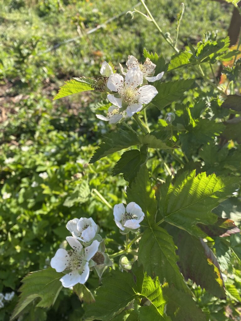 The permanent garden berries are going insane. We are getting strawberries from the 40 small plants I plants just a week ago and there must be well over 100 blackberries growing. Two of the blueberries are setting while the third is just starting to bloom; that was the plan that they would not all ripen at one time and it sort of worked this year! The boysenberry has a ton of flowers and the raspberries are flowering and setting. So many thorns though🤨. There are three different raspberries also so again they do not all ripen at once. We will see how this all works!